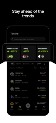 உங்கள் பல சங்கிலி கிரிப்டோ சொத்துக்களை எளிதாகக் கண்காணிக்க, ஓகேஎக்ஸ் வாலட் (OKX Wallet) ஒரு ஒருங்கிணைந்த டாஷ்போர்டை வழங்குகிறது. இதில் பிட்காயின் (Bitcoin), எத்தேரியம் (Ethereum), சொலானா (Solana), யுஎஸ்டிடி (USDT), யுஎஸ்டிசி (USDC) மற்றும் பிற சொத்துக்களை ஒரே இடத்தில் நிர்வகிக்கலாம். டிஃபை (DeFi) பங்கீடு, டோக்கன் வர்த்தகம் மற்றும் ஏர் டிராப் (airdrop) மூலம் கிடைக்கும் வருவாய்க்கான இலாப நஷ்ட கண்காணிப்பு இதில் அடங்கும். சந்தையின் துடிப்பை உணர்ந்து, நிகழ்நேர வர்த்தகத் தரவு மற்றும் சந்தை வாய்ப்புகளை அணுகுங்கள். "மீம் பம்ப்" (Meme Pump) அம்சம் மூலம், போக்குக்கு வருவதற்கு முன்பே அதிக ஆற்றல் கொண்ட மீம் காயின்களைக் கண்டறியலாம். 40-க்கும் மேற்பட்ட சங்கிலிகளில் 500-க்கும் அதிகமான டெக்ஸ்கள் (DEXs) இணைக்கப்பட்ட டெக்ஸ் (DEX) திரட்டி மூலம் வேகமாகவும் புத்திசாலித்தனமாகவும் வர்த்தகம் செய்யுங்கள். சந்தை, வரம்பு மற்றும் உத்தி ஆர்டர்கள் மூலம் நெகிழ்வான வர்த்தகத்தை அனுபவித்து, 25-க்கும் மேற்பட்ட சங்கிலிகளில் 27 பாலப் ப்ரோட்டோகால்கள் வழியாக எளிதாக டோக்கன்களை மாற்றலாம்.